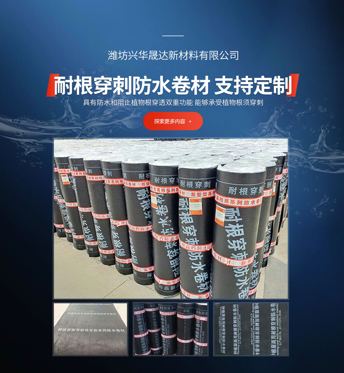 公司的產品有:SBS改性瀝青防水卷材、自粘防水卷材、高分子防水卷材、耐根穿刺防水卷材、防水涂料系列性能優良,使用壽命長,產品廣泛應用于各類民用建筑房屋、地鐵、隧道、蓄水池、游泳池、屋頂、花園、橋梁等多個領域的防水防滲工程。我們為您提供解決方案-少花冤枉錢。